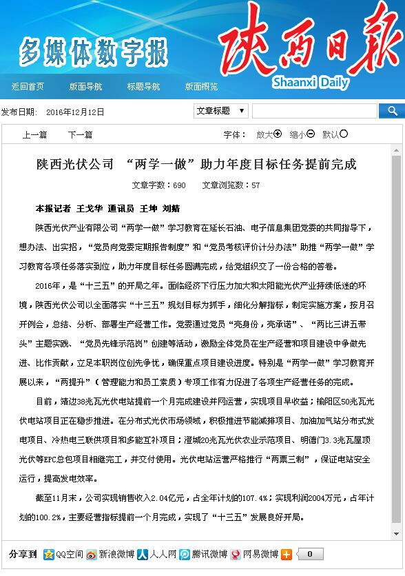 陜西光伏公司 “兩學(xué)一做”助力年度目標(biāo)任務(wù)提前完成