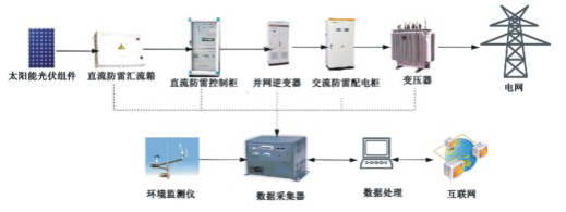 集中式光伏電站由光伏組件、匯流箱、并網(wǎng)逆變器、控制柜、變壓器、監(jiān)控系統(tǒng)、支架和變電所等組成,形成集中式并網(wǎng)光伏發(fā)電系統(tǒng)。